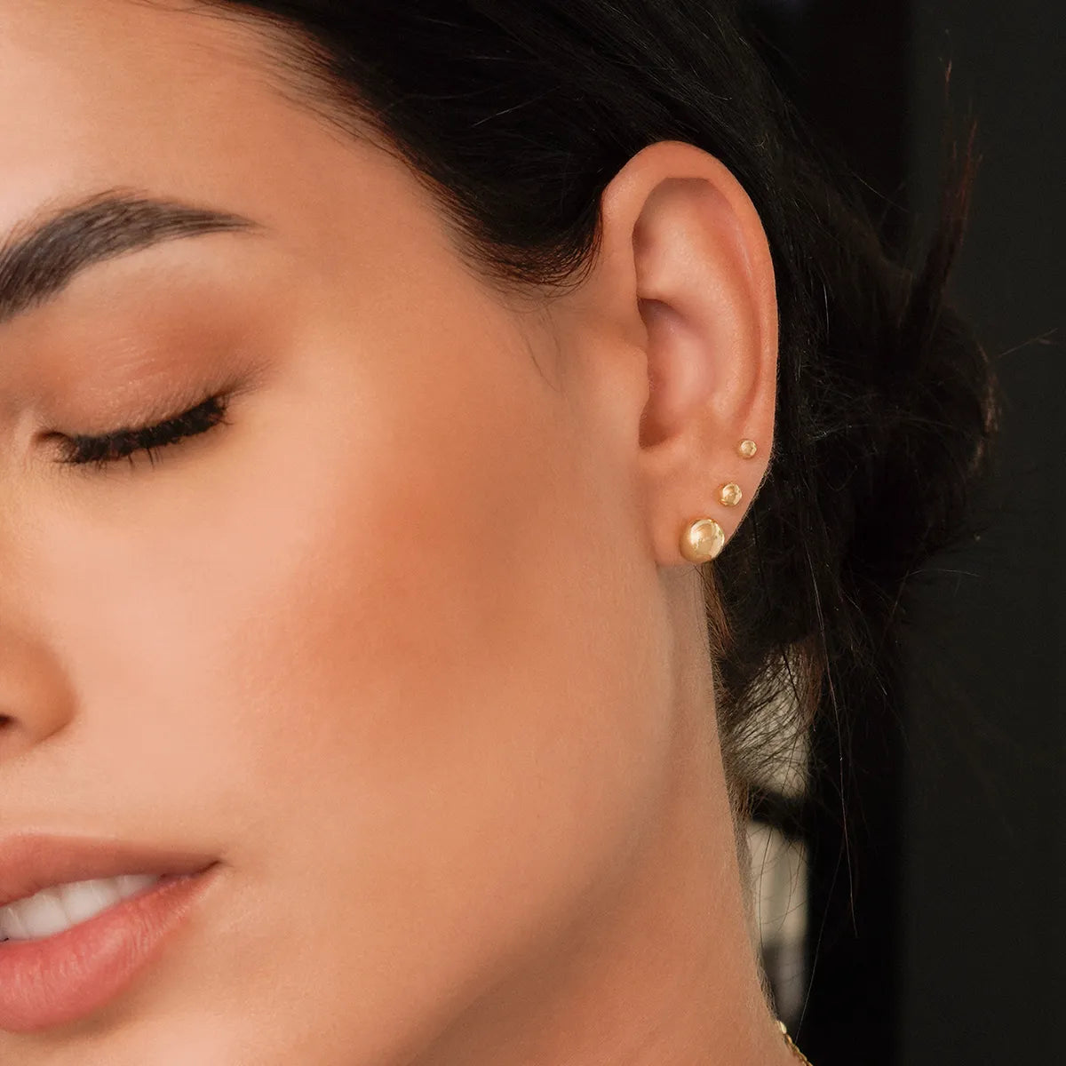 El oro laminado es un material elaborado al fusionar 3 capas de oro 18k sobre una base de metal resistente. A diferencia del baño de oro, el oro laminado contiene una cantidad mayor de oro y es mucho más duradero, conservando su brillo y apariencia por años con el cuidado adecuado. Es una excelente opción para quienes desean lucir joyas de aspecto lujoso a un costo más accesible.