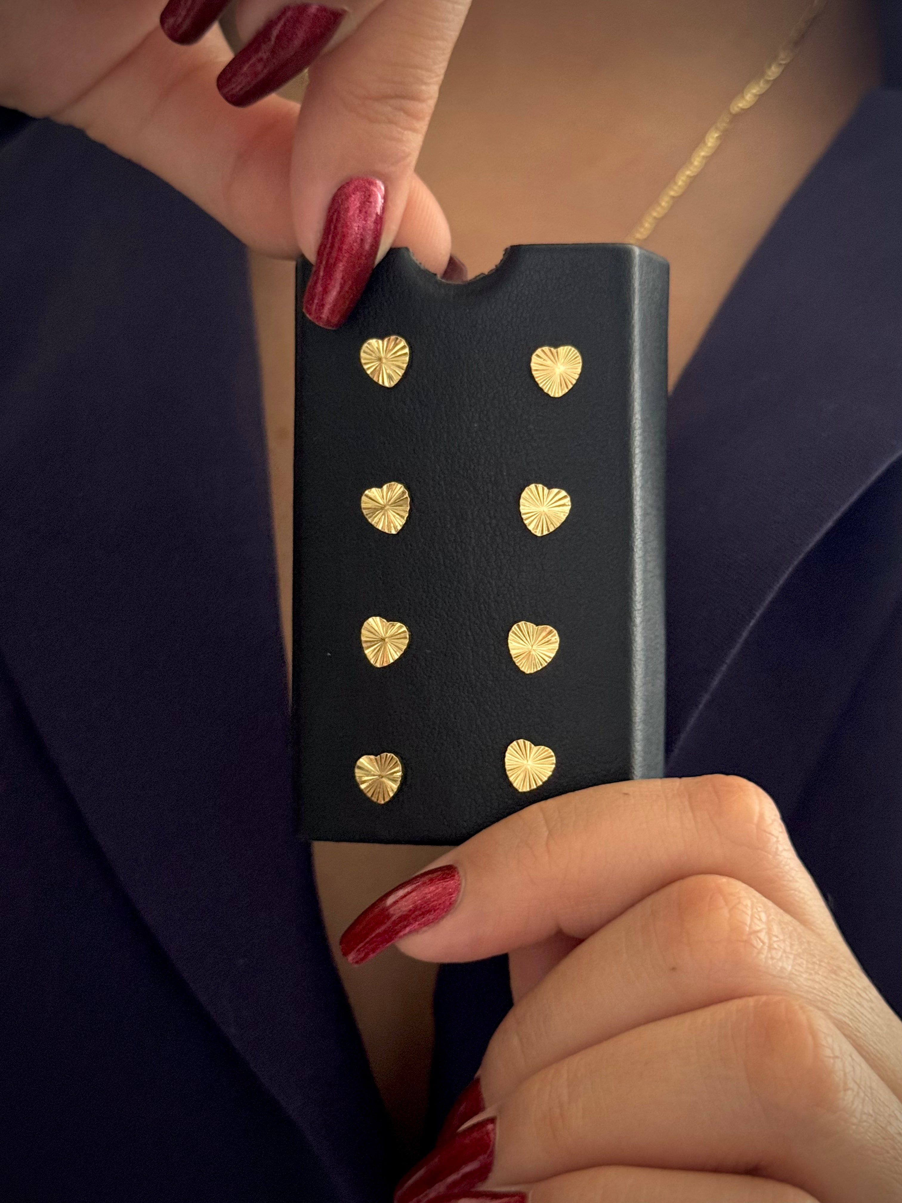 El oro laminado es un material elaborado al fusionar 3 capas de oro 18k sobre una base de metal resistente. A diferencia del baño de oro, el oro laminado contiene una cantidad mayor de oro y es mucho más duradero, conservando su brillo y apariencia por años con el cuidado adecuado. Es una excelente opción para quienes desean lucir joyas de aspecto lujoso a un costo más accesible.