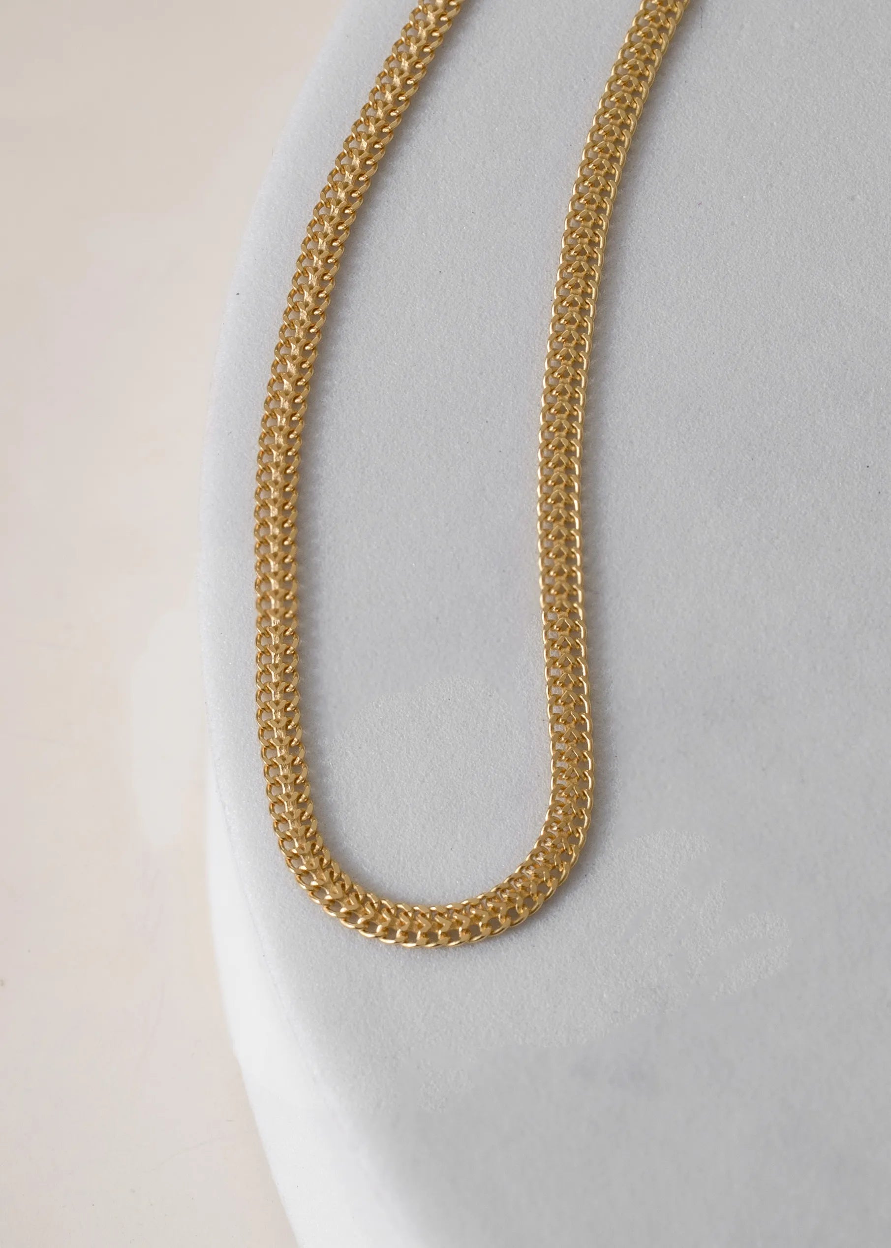 El oro laminado es un material elaborado al fusionar 3 capas de oro 18k sobre una base de metal resistente. A diferencia del baño de oro, el oro laminado contiene una cantidad mayor de oro y es mucho más duradero, conservando su brillo y apariencia por años con el cuidado adecuado. Es una excelente opción para quienes desean lucir joyas de aspecto lujoso a un costo más accesible.