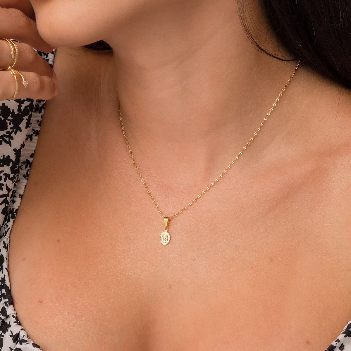 El oro laminado es un material elaborado al fusionar 3 capas de oro 18k sobre una base de metal resistente. A diferencia del baño de oro, el oro laminado contiene una cantidad mayor de oro y es mucho más duradero, conservando su brillo y apariencia por años con el cuidado adecuado. Es una excelente opción para quienes desean lucir joyas de aspecto lujoso a un costo más accesible.