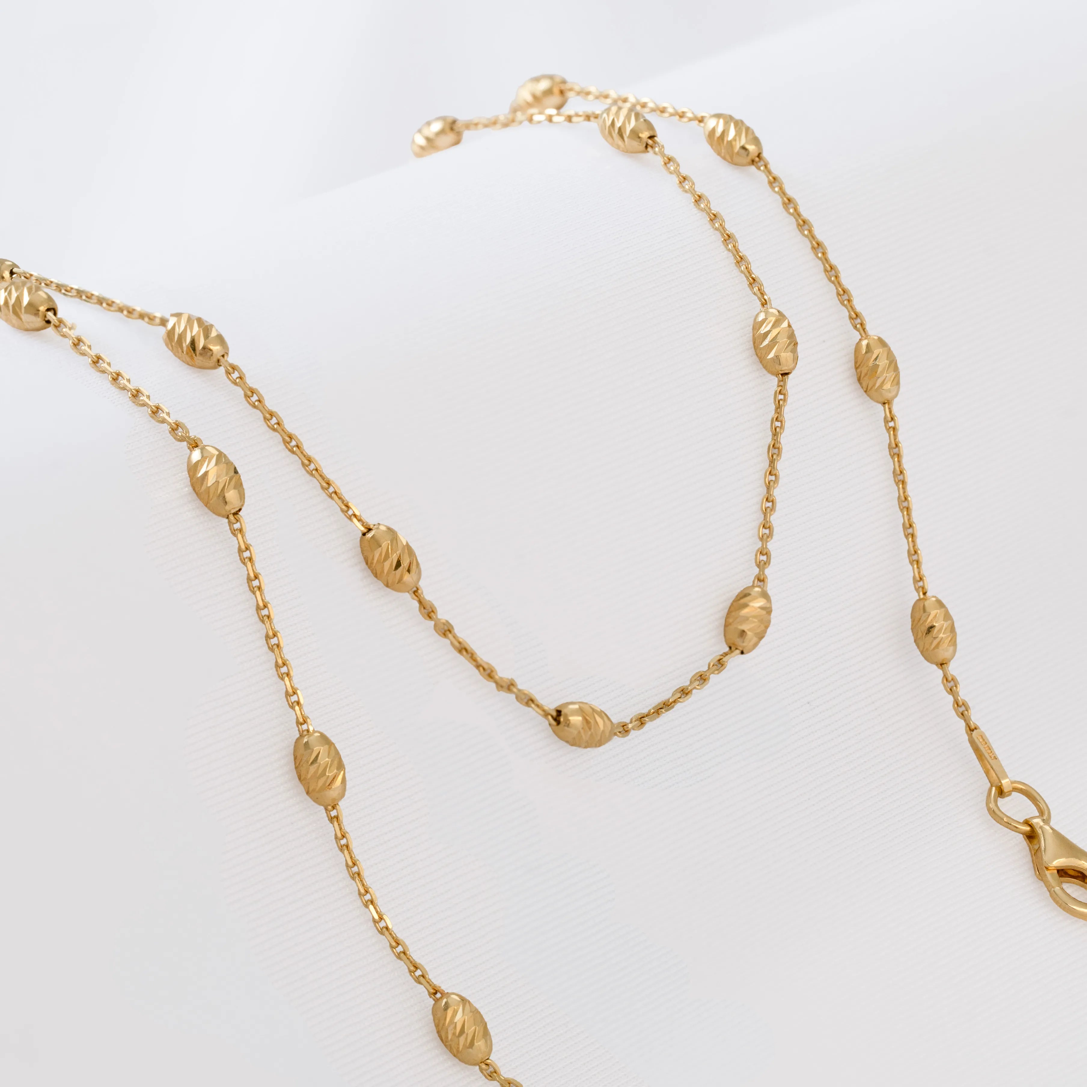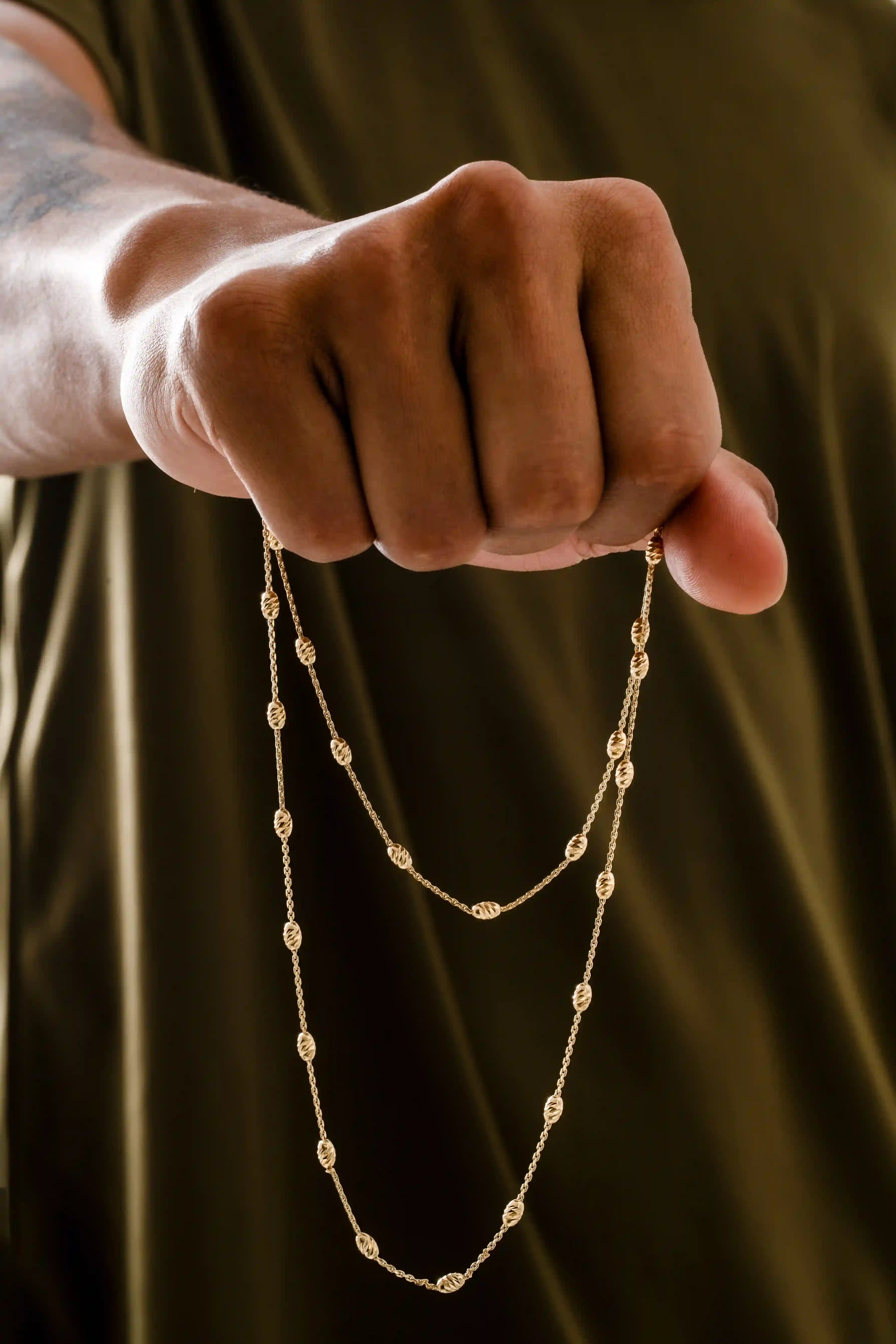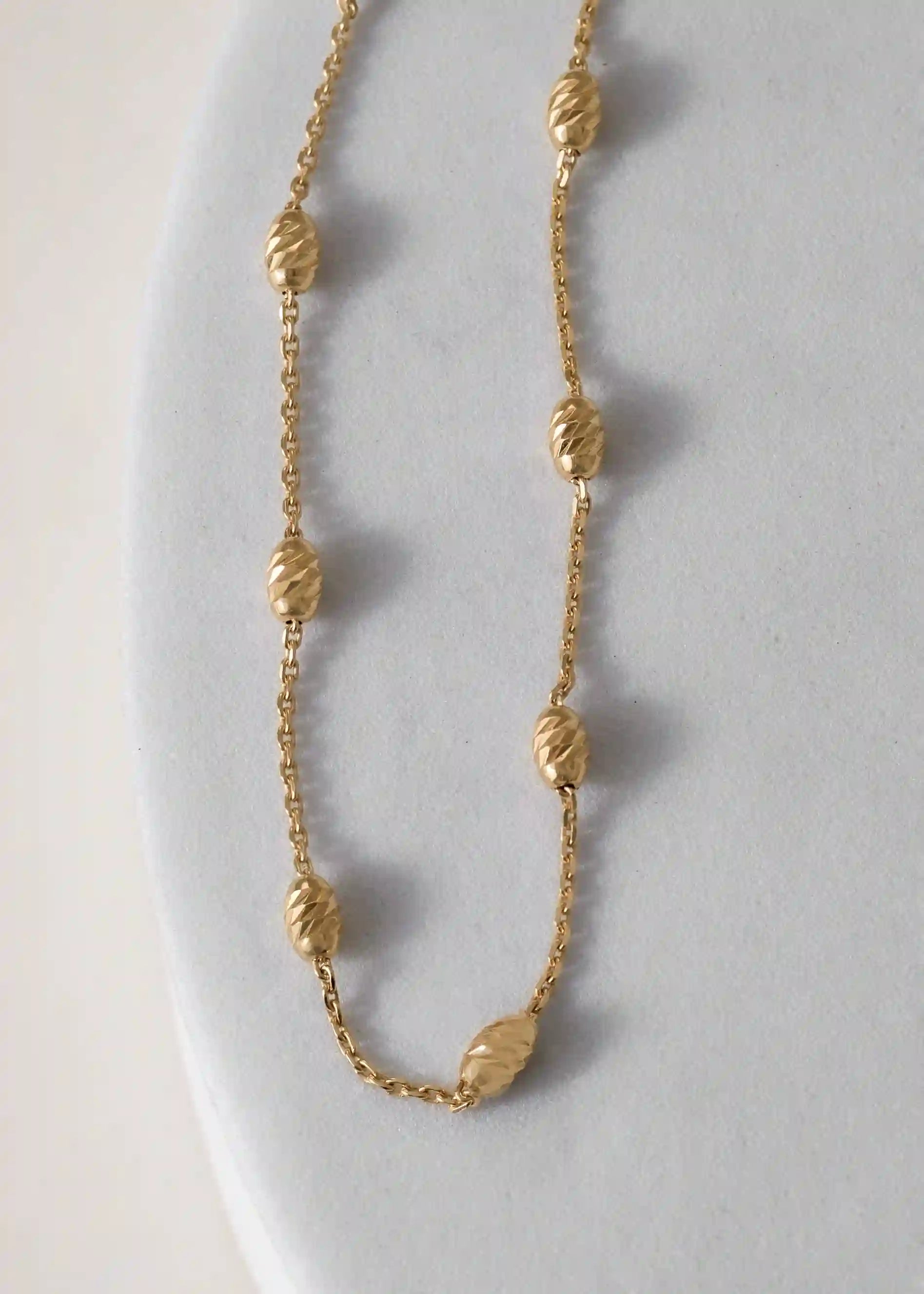El oro laminado es un material elaborado al fusionar 3 capas de oro 18k sobre una base de metal resistente. A diferencia del baño de oro, el oro laminado contiene una cantidad mayor de oro y es mucho más duradero, conservando su brillo y apariencia por años con el cuidado adecuado. Es una excelente opción para quienes desean lucir joyas de aspecto lujoso a un costo más accesible.