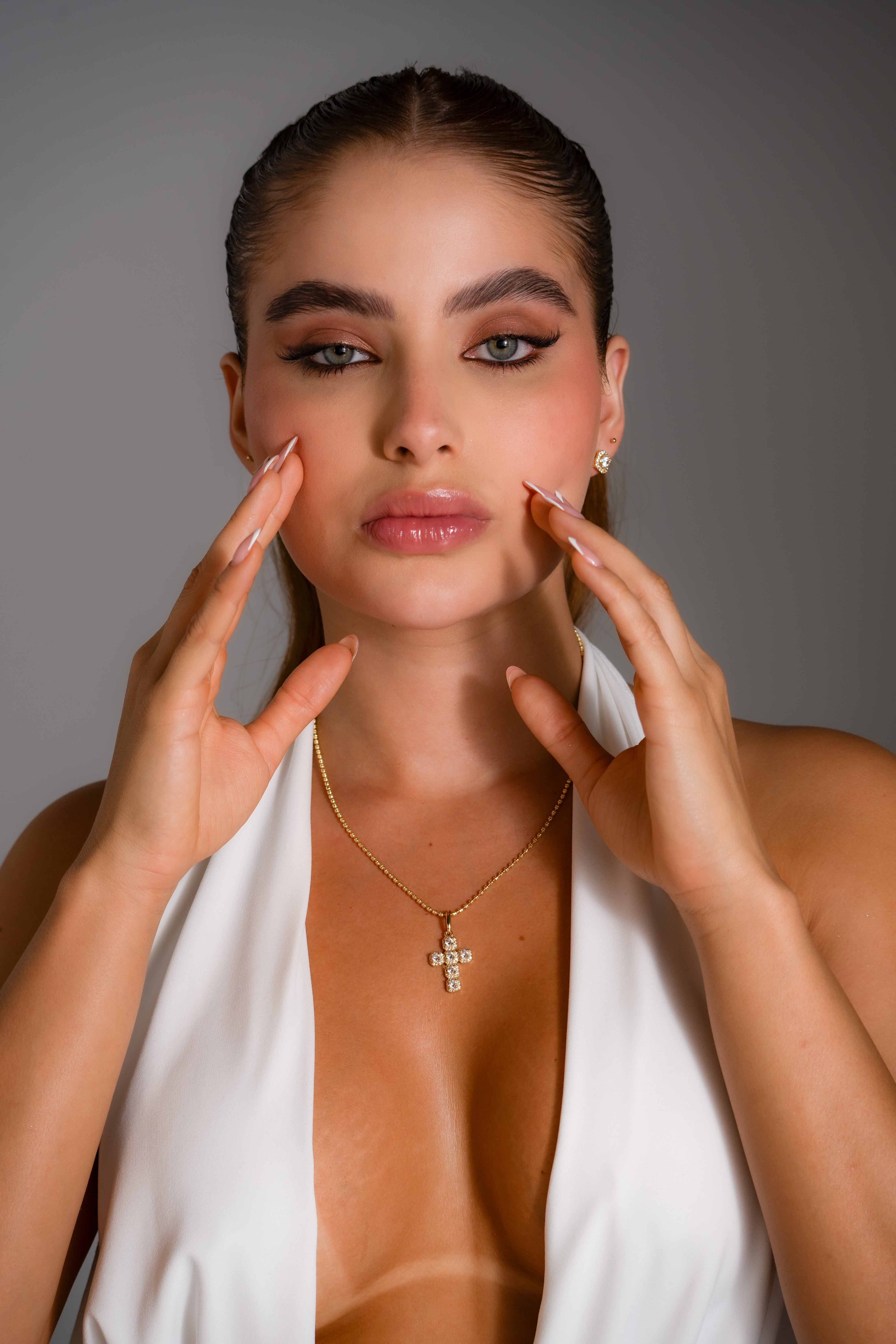 El oro laminado es un material elaborado al fusionar 3 capas de oro 18k sobre una base de metal resistente. A diferencia del baño de oro, el oro laminado contiene una cantidad mayor de oro y es mucho más duradero, conservando su brillo y apariencia por años con el cuidado adecuado. Es una excelente opción para quienes desean lucir joyas de aspecto lujoso a un costo más accesible.