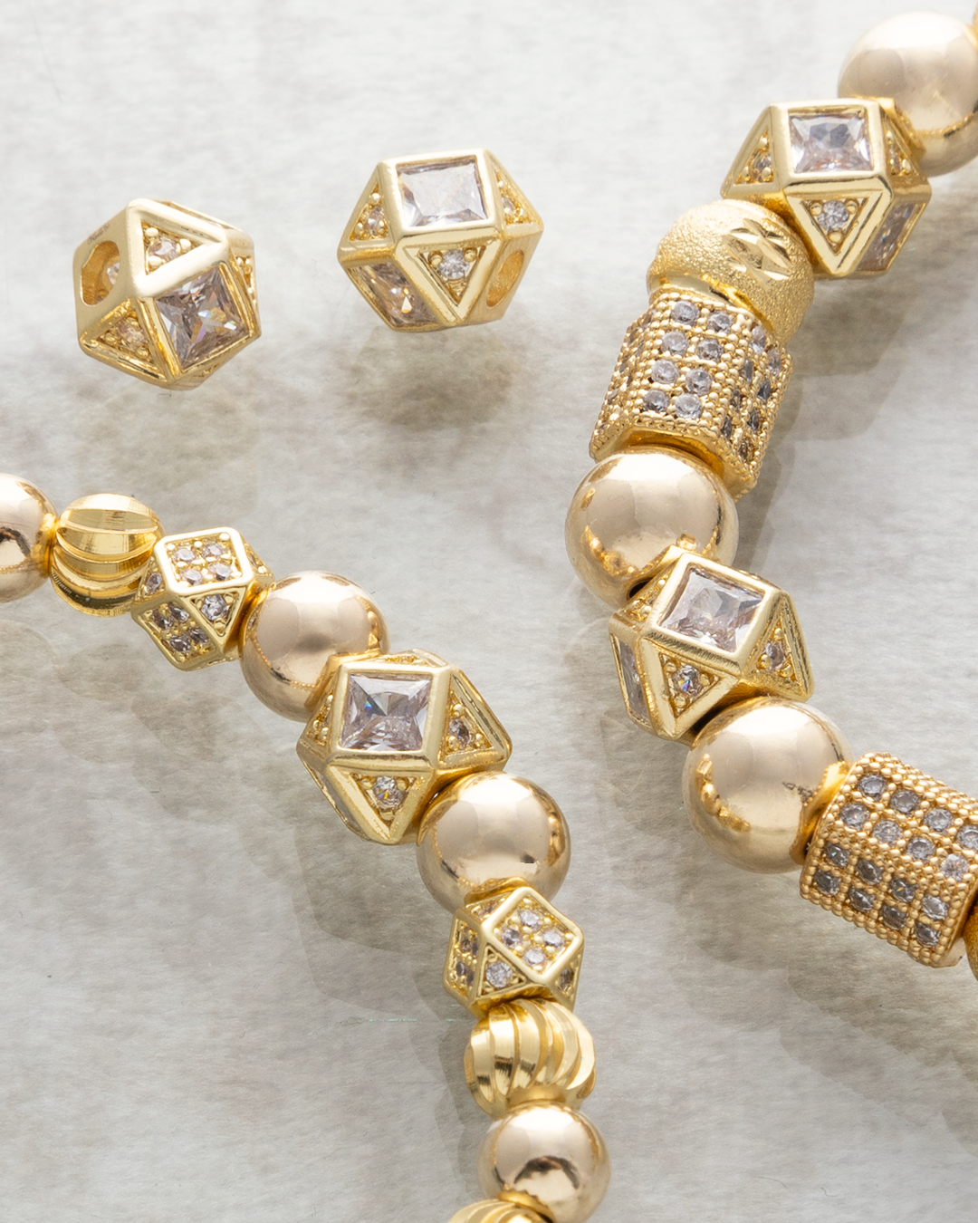 El oro laminado es un material elaborado al fusionar 3 capas de oro 18k sobre una base de metal resistente. A diferencia del baño de oro, el oro laminado contiene una cantidad mayor de oro y es mucho más duradero, conservando su brillo y apariencia por años con el cuidado adecuado. Es una excelente opción para quienes desean lucir joyas de aspecto lujoso a un costo más accesible.