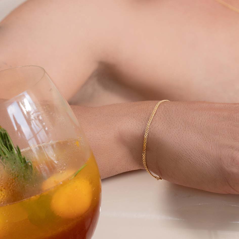 El oro laminado es un material elaborado al fusionar 3 capas de oro 18k sobre una base de metal resistente. A diferencia del baño de oro, el oro laminado contiene una cantidad mayor de oro y es mucho más duradero, conservando su brillo y apariencia por años con el cuidado adecuado. Es una excelente opción para quienes desean lucir joyas de aspecto lujoso a un costo más accesible.
